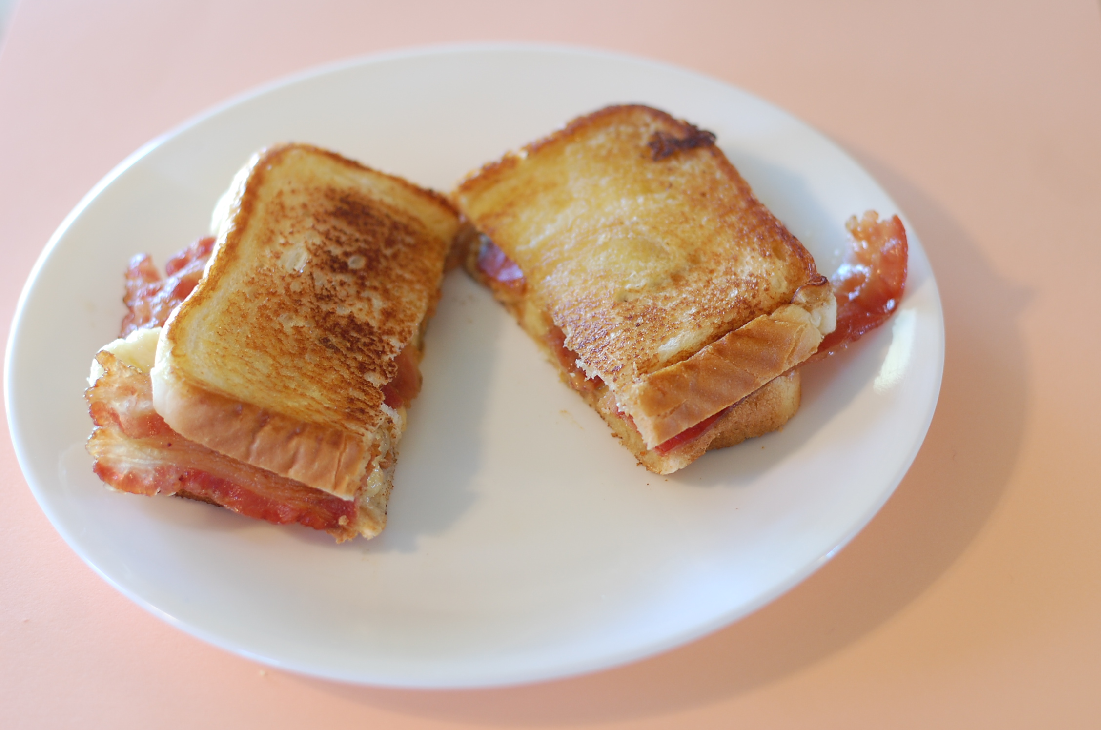 Then I decided to go for the all and everything: honey and bacon. And I started to understand. Bacon makes everything better. And honey is goooooood. Neither sandwich was particularly pretty (see frying bananas and goopy peanut butter). But…nom, nom…all the evidence is gone.